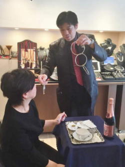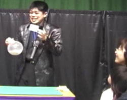 ★Rope & Ring & Wand 観客から指ををお借りし、ロープを通します。 ロープの端と端を観客に持ってもらい、指輪をロープから外せなくします。 更に透明の棒の端と端を観客に持ってもらい、おまじないを掛けると・・・。 観客参加型、観客大喜びのマジックです。 また海外の方にも大うけです。 |