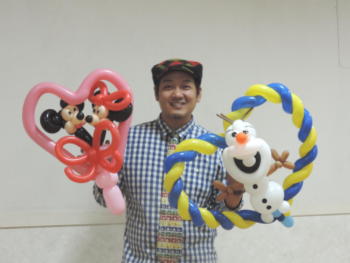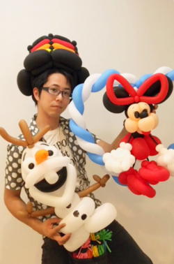 風船職人 池田くん 従来のバルーンアートの枠を超えた、より精巧に 完成度の高いキャラクターをフィギュアの様に作る。 元お笑い芸人という経験を活かし、お笑いを取り入れ た「バルーンショー」や「風船配り」を得意とする。 アニメキャラクターを短時間で忠実に再現することに は絶対の自信があり、100種類以上のレパートリーの 全てが、子供だけでなく大人が欲しくなるクオリティ。 リピート率80%以上を誇る、バルーンフィギュアクリエ ータ―。 |