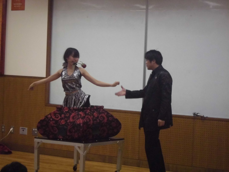 女性アシスタント二人によるマジックのレクチャーもありました。