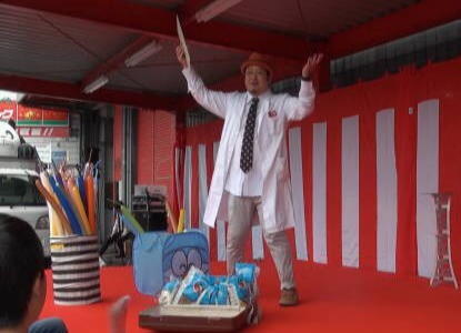 昨年に続き、1月2日には三重県名張市のオートセンターモリ様でステージ・マジック&ホッピング!