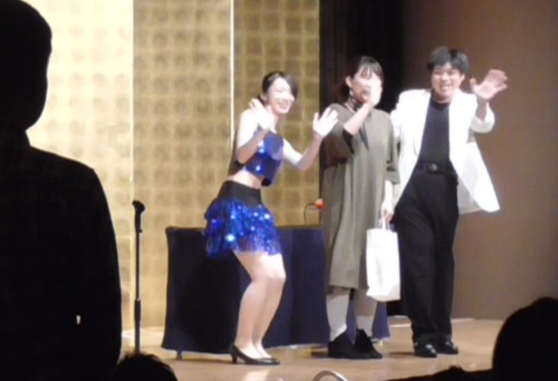 大きな会場だったのにお客様は舞台に集まって、タネが見えないかと下から覗き込みながら観て下さりました。