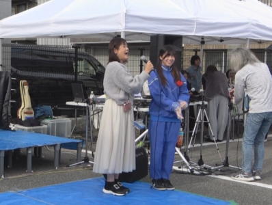 司会の林さんはマイクで店舗を わたがしブースで頑張ってくれてます 野田高校の生徒さんが
