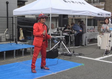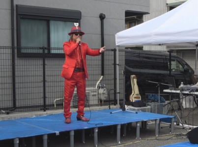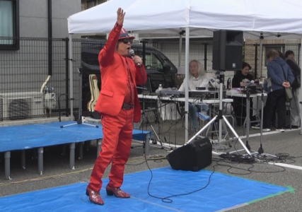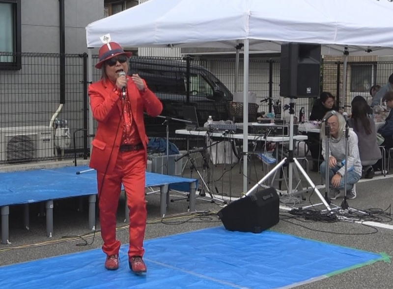 コテの付いた帽子に、赤のスーツ、歌う歌は全て長田か神戸!