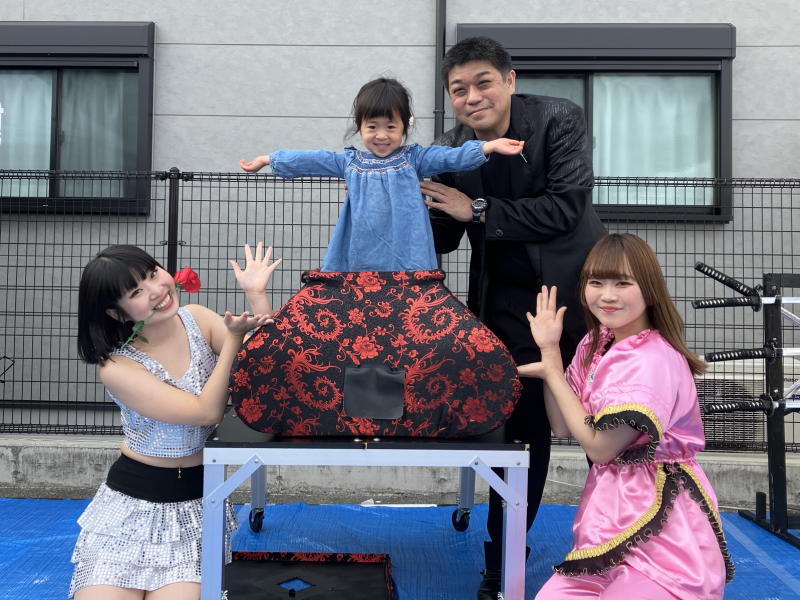 ステージのラストはイリュージョンの道具とお客様の記念撮影です。
